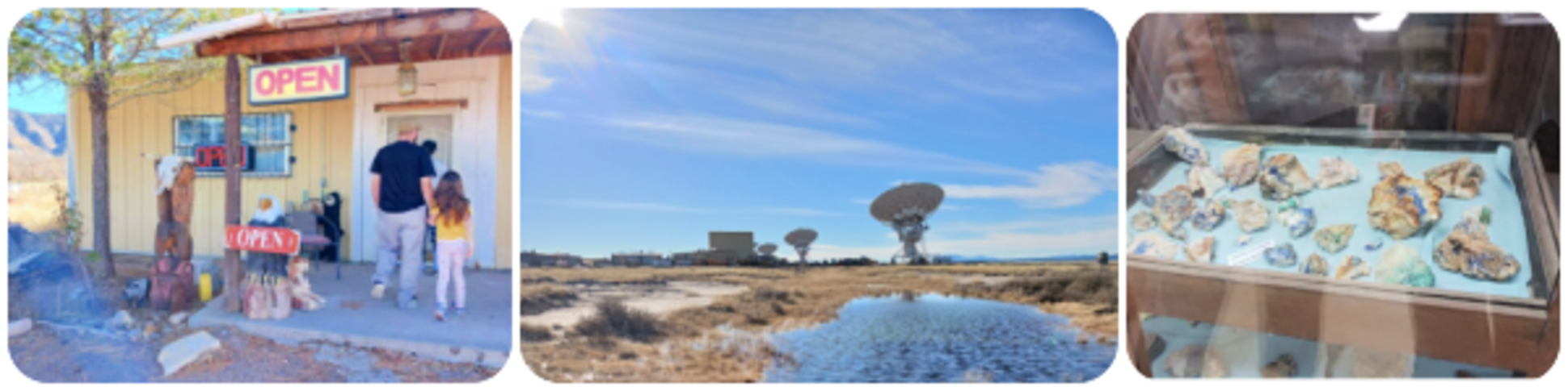 On a recent day trip to visit the Very Large Array (VLA) 2 hours southwest of Albuquerque, my family and I stumbled upon Otero’s Gem & Mineral Rock Shop in Magdalena, NM. The open sign was on so of course we had to make a quick u-turn (legally!) and stop in.