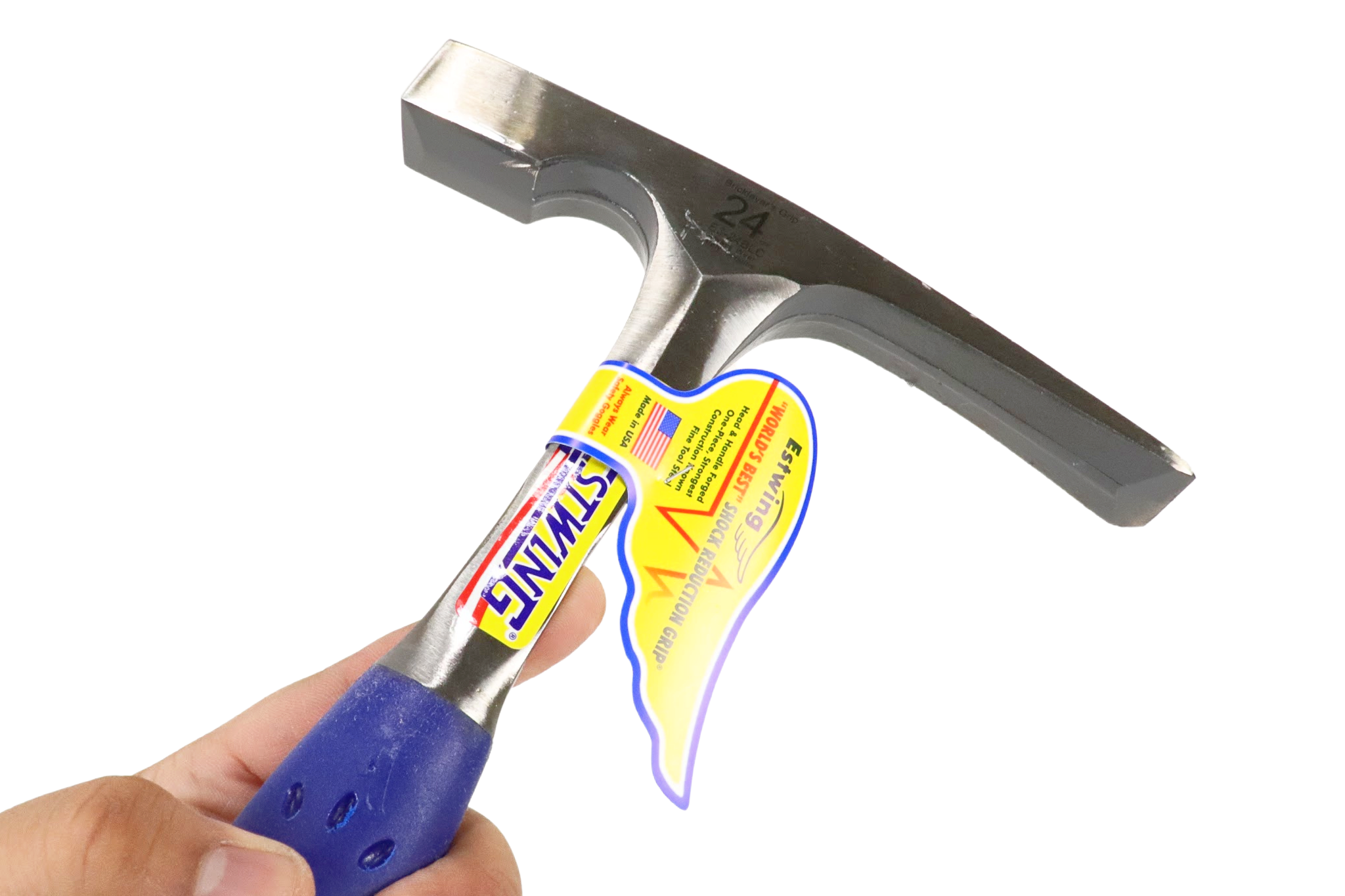 The Estwing Bricklayer / Mason’s Hammer has a wider striking face for better performance at the worksite, along with a patented nylon end cap for added durability. The hammer has a bonded and molded Shock Reduction Grip® for the utmost in both comfort and durability, while reducing vibrations caused by impact. The head and handle are forged in one piece and are fully polished. This tool has unsurpassed balance and is double tempered for added strength.